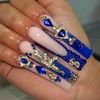 RUOKEXIN Long Square Press on Nails French Tip Fake Nails Blue False Nails with Gold Charms Designs Sparkly Artificial Nails Long Square Glue on Nails Cute Stick on Nails for Women 24Pcs