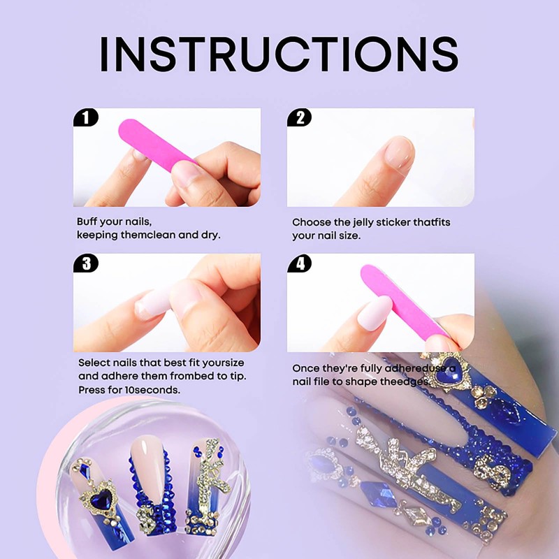 - Fingernails Package: 24pcs press on nails,24 pcs jelly glue ,1 bottle of glue,1 An alcohol bag,1 nail file and 1 small wooden stick,Meet the needs of tools required by your DIY.