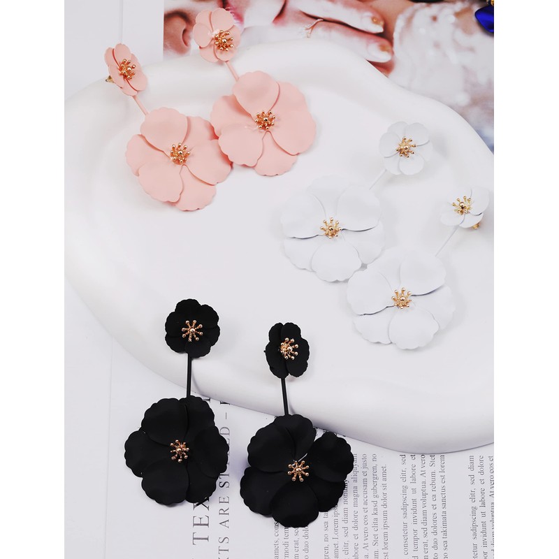 - 🌹 HIGH QUALITY ROSE PETAL EARRINGS 🌹 The flower petal earrings are made of quality alloy and plated gold. The delicate painting and dyeing technology makes the earrings surface smooth and bright. The floral earrings’ length is about 2.95 inches, but its weight is only 0.6oz, smooth and lightweight, and the needle is designed for sensitive skins, friendly to sensitive ears, so after a whole day’s wearing, you won’t feel tired and uncomfortable at all.