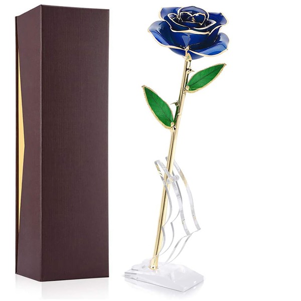 1、Real Rose Hand Picked Fresh and Forever Preserved,blue rose flower language: unique,promise and kindness 2、11-12 Inches Long, come with the clear display stand and gift box,24k rose made of real rose and dipped 24k gold,they are real rose petals,real rose leaves,and rose thorns 3、24k gold rose take over 4 days handwork and 65 steps to made one piece,very special and precious 4、24k gold rose made of real rose and plated 24k gold,You can see the flower texture clearly,the plastic flowers don't have this feature,they are cheap,they can't compare to the 24K Rose 5、Unique and Gorgeous Rose Jewelry Gift for Her,Rose represent love, and 24k gold rose stand for forever love,Every gift box has a certificate,we make sure the roses are real and dipped in 24K Gold