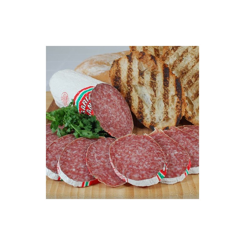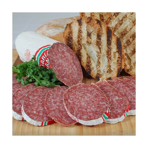 A mild salami, made of finely ground pork in a white casing, with a deep eggplant color. A nice smooth flavor makes this pork sausage a staff favorite and our best-selling salami. With a lovely smoky taste, try this on a sandwich, you won't be disappointe