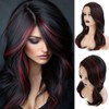 Long Wavy Black Red Wigs for Women Synthetic Side Part Heat Resistant Party Cosplay Hair Wig