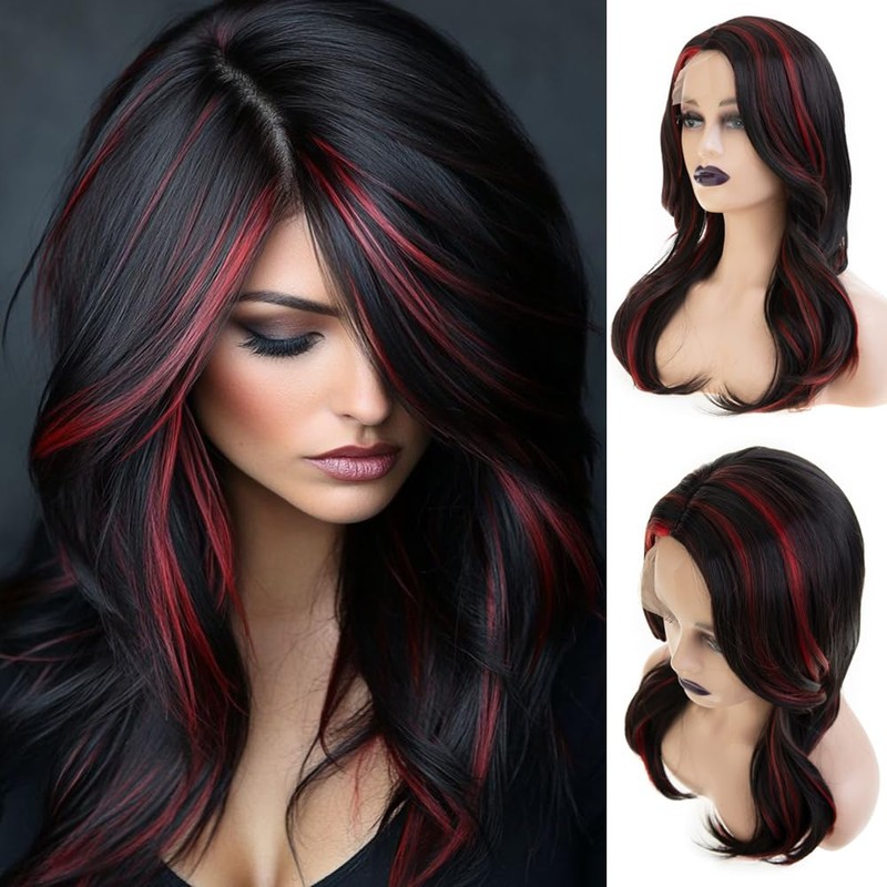 - 【Specification】Color:black and red Wig.Including:1 wig + 1 wig cap. Note: There are some color difference because of different light and monitor.