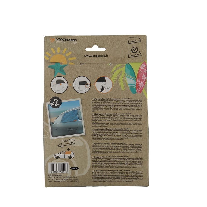 - 2 Textile Sun Shade Socks for Rear Windows of the Car Longboard Innovates with the First Printed Socks