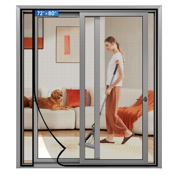 - Quick Installation: The screen size 75.5*82, fit door size 72*80. Magnetic screen door for Sliding Doors, Double Doors, French Doors, etc .You only need to follow the steps in the instructions to quickly install it. Tips: Please measure your door twice before installation to find the most suitable installation position