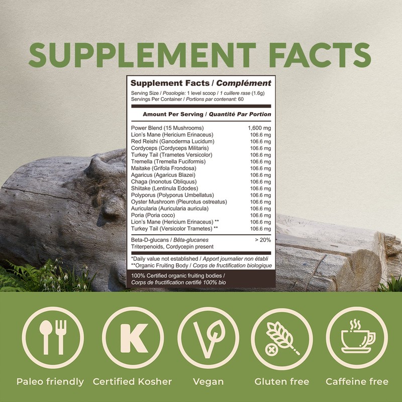 - PURE & USDA ORGANIC CERTIFIED: Our USDA-certified Blend 15 extract is derived exclusively from a 100% fruiting body, free from grains, fillers, or additivesexperience pure, organic, and unadulterated mushrooms for superior health benefits