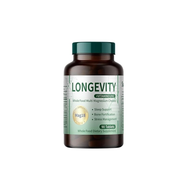 Longevity Mag18 Peptide Magnesium Supplement with Vitamin D3 + K2 – Whole Food Multi Magnesium Chelate – Supports Bone, Heart & Muscle Health – Non-GMO, 90 Tablets (3-Month Supply)