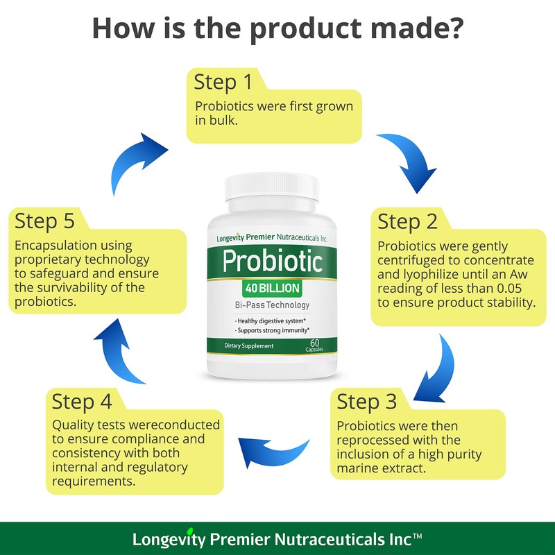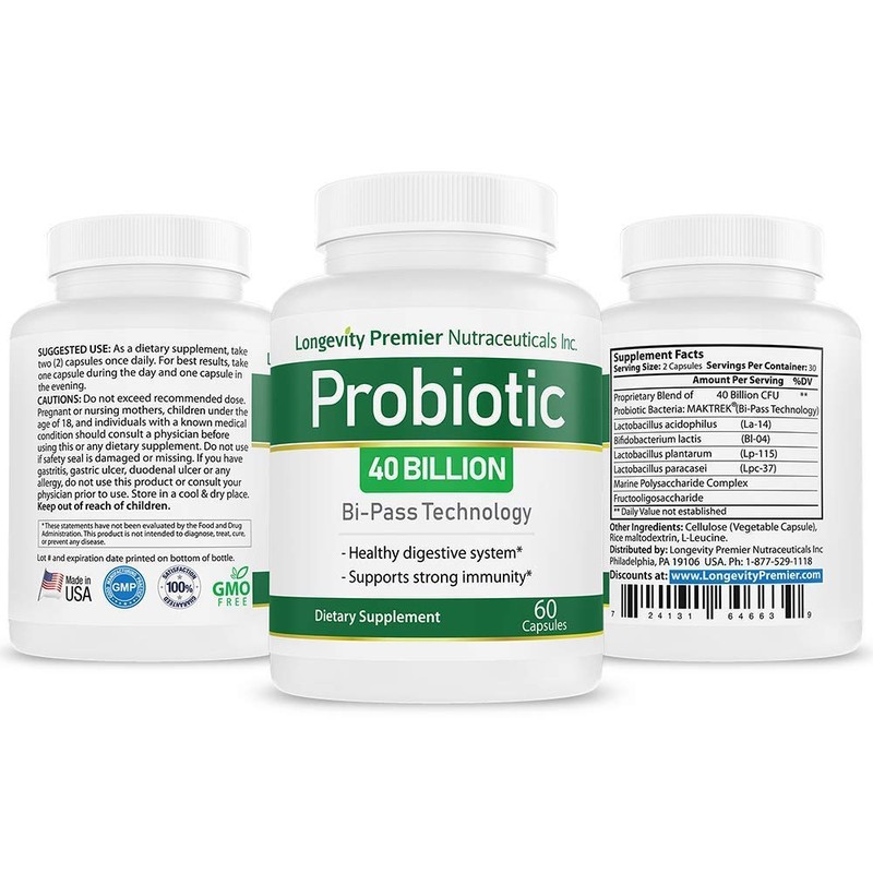 Longevity Probiotic 40 Billion CFUs for Colon Digestive Health