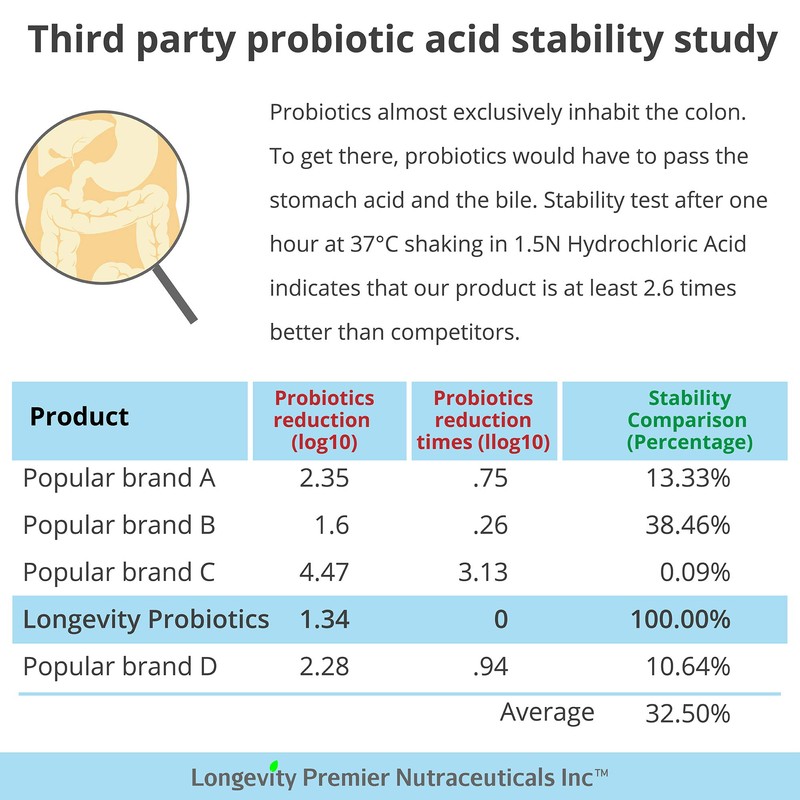 • 2.6 times better than some popular competing brands based on acid stability test;