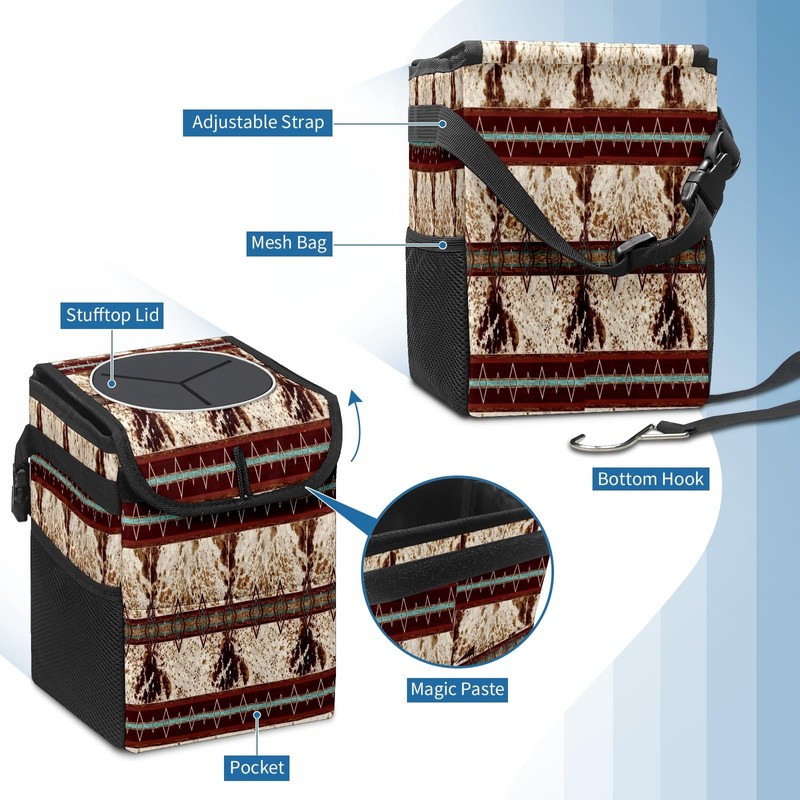 longlugoo Car Trash Can with Lid Western Cowhide Aztec Collapsible Reusable Leak-Proof Auto Garage Bag,Hanging Vehicle Car