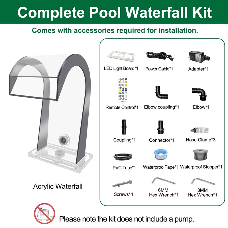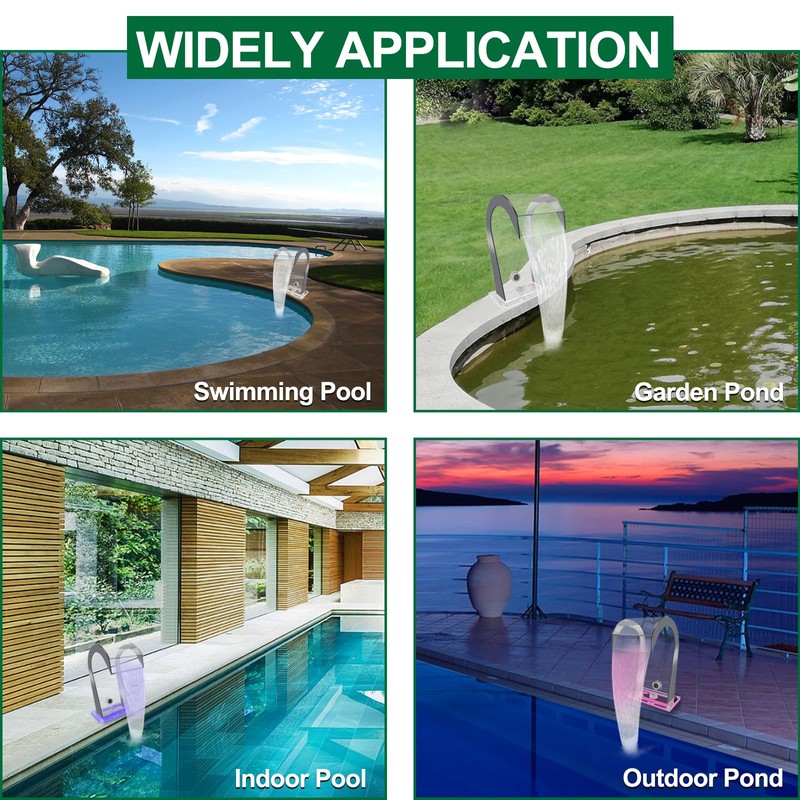 - 【DECORATIVE WATERFALL】The waterfall spillway will make a decorative addition to your garden pond or swimming pool, it makes them more elegant, fashionable and beautiful. The multi-color lights and the gentle sound of water running make your patio more special at night