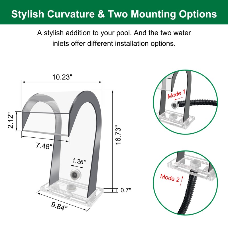 - 【DURABLE MATERIAL】The pool fountain is made of high-quality acrylic material, solidity and durability. Strong acrylic construction for ease of use in indoor/outdoor without worry about rust stains on the surface