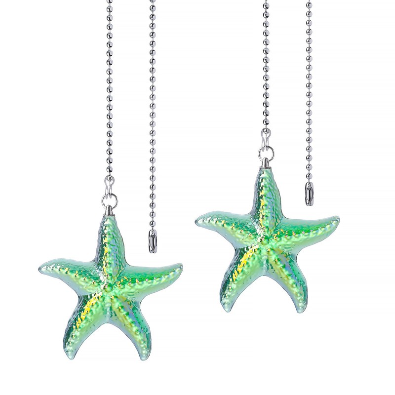 LONGSHENG - SINCE 2001 - 2 Pack Ceiling Fan Pull Chain Ornaments Extension Chains with Decorative Green Glass Starfish 23 Inches Fan Pull Chain Set For Ceiling Light Lamp Chain