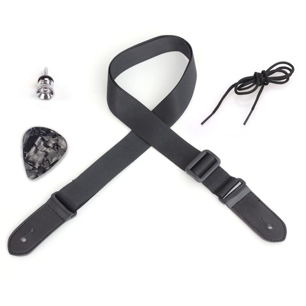 Longteam Simple Linen Leather Ukulele Strap Adjustable Length Durable Uke Straps with Nail, Rope, Picks, Simple Black, 1
