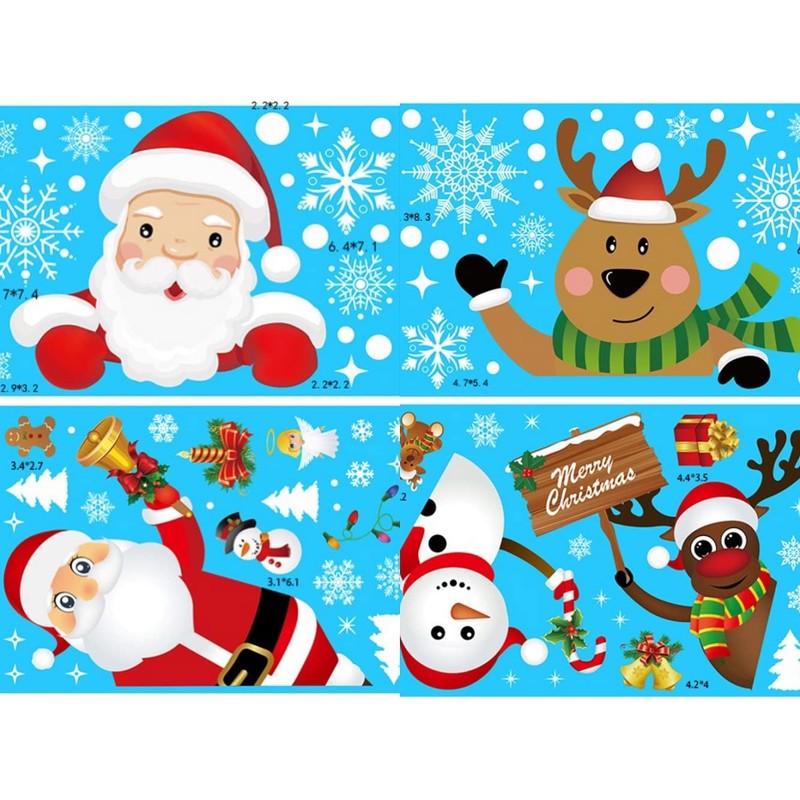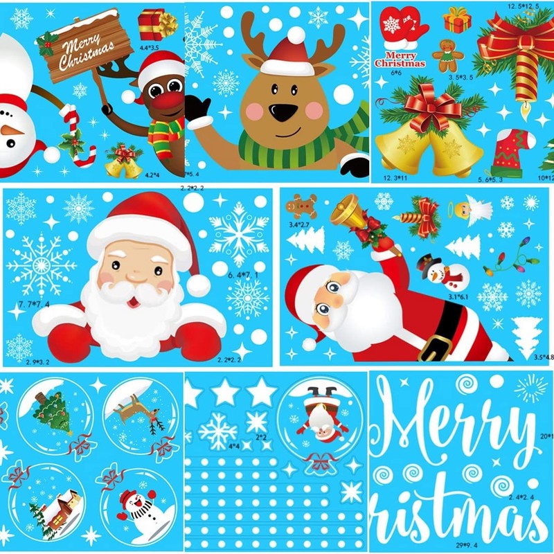LONGTEN Christmas Windows Static Stickers Clings Santa Claus Snowman Deer Snowflake Removable Vinyl Christmas Tree DIY Wall Window Door Mural Decal Sticker for Showcase