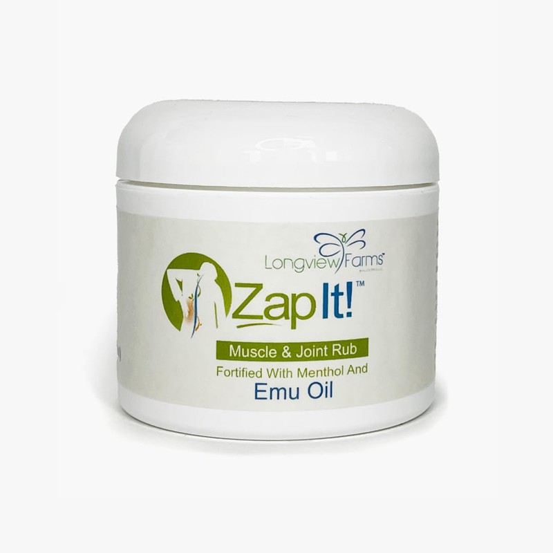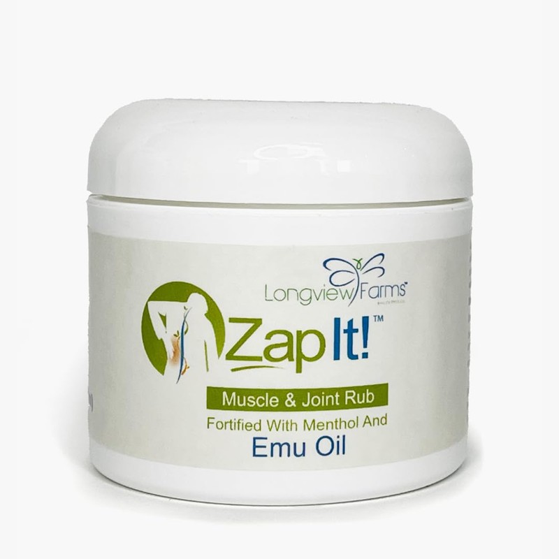 Longview Farms® Zap It! Muscle and Joint Therapy Cream– Fast-Absorbing Full Body Formula for Neck, Back, Legs, and feet and Knee Muscle Aches, Joint Discomfort, with Emu Oil(4 oz. Jar)