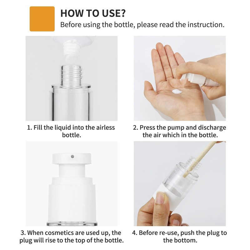 - WELL-DESIGNED: These airless pump bottles are designed without straws to keep fresher for longer, increasing their shelf-life and preventing the oxidation of the cosmetics and the growth of bacteria.