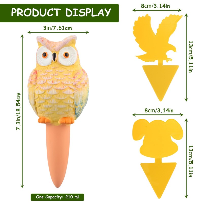 Longzhuo Paquete de 4 estacas de riego automático, Estacas de riego, Globo para Regar Plantas, Estacas terracota automático regador de plantas para Insertos de Cerámica (Búhos)