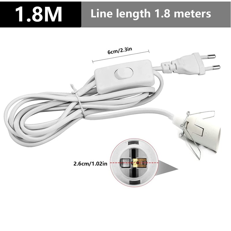 - ??Einstecken und loslegen??Suchen Sie einfach eine Gl??hbirne, die in die Lampenfassungen passt, und stecken Sie sie ein - fertig. Mit der Lampenfassung mit Schalter, die am Kabel befestigt ist, k?nnen Sie die Lampe ein- und ausschalten. Die Fassung E14 hat eine Kabell?nge von 1.8 m, was f??r die meisten H?ngebeleuchtungen ausreichend ist.