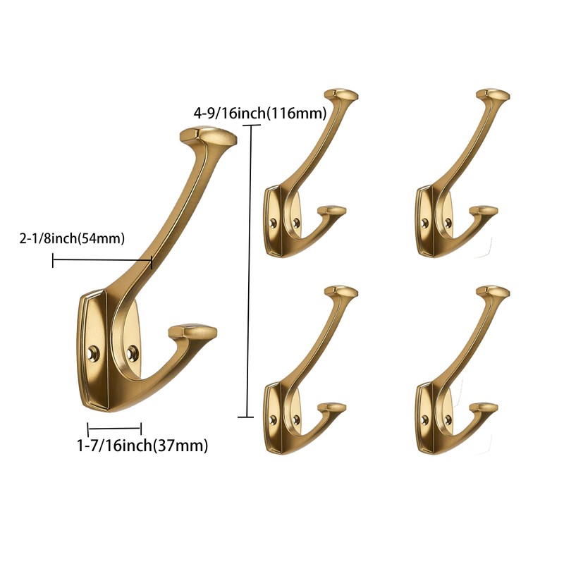 LONHECAN Champagne Bronze Hooks Wall Mounted Decorative Solid Heavy-Duty Coat Hooks for Towels,Coats,Robes,Towels,Bag Behind The Door,Bathroom Wall Hooks (5 Pack)
