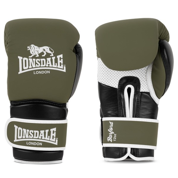Lonsdale Barford Leather Boxing Gloves Olive/Black/White 10 oz