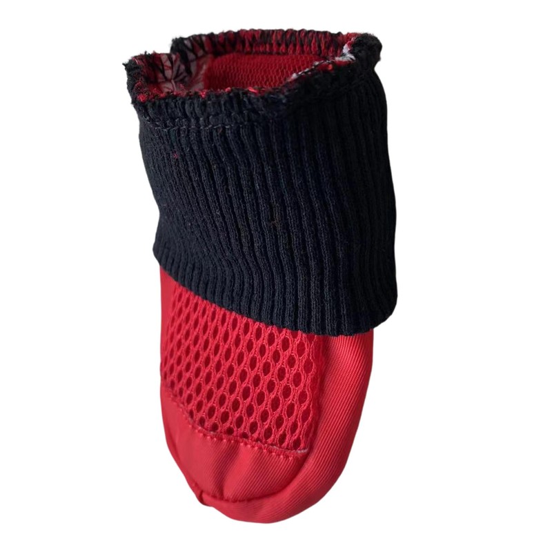 - Upper is made of double-layer breathable mesh fabric, hemmed by soft cloth around, with flexible cuffs at the top, capable to keep debris out, and make paws comfortable, cool and dry
