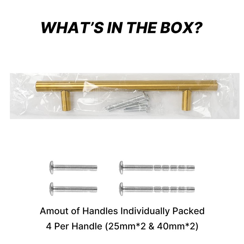 - ※TWO SIZES SCREWS: Our gold kitchen handles offer 25mm and 40mm screws that help you to fit different thickness of the furniture. Please contact us if you need other size of screws.