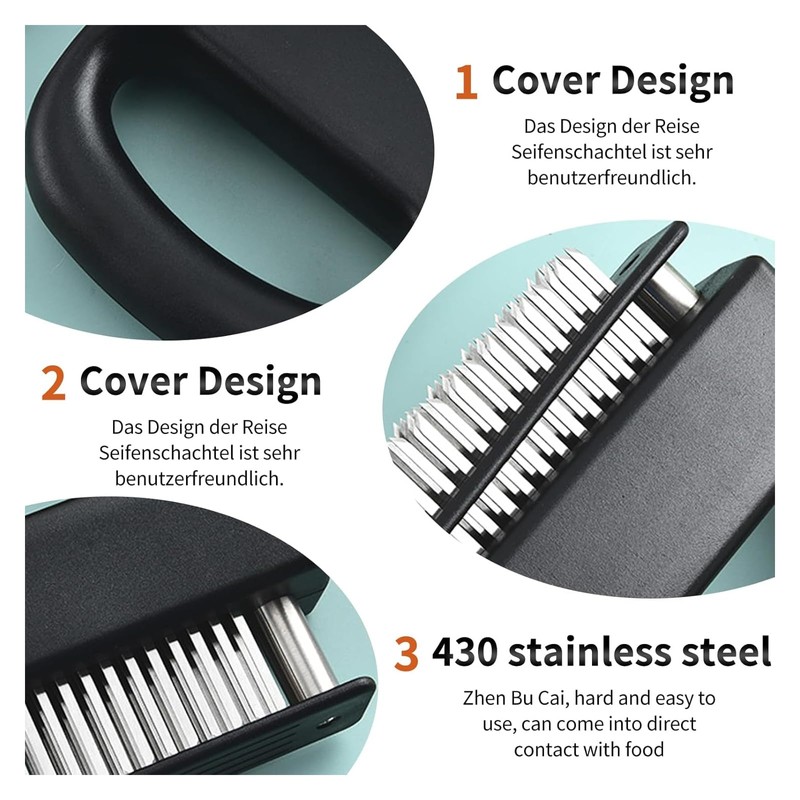 - HIGH QUALITY & EXCELLENT DESIGN 48 hard blades made of stainless steel, durable and rustproof, with sharp blades on both sides and longevity to maintain sharpness even after frequent use. The manual push handle made of ABS is ergonomic and offers you a lot of comfort, so you can easily control and maintain a good cooking mood.