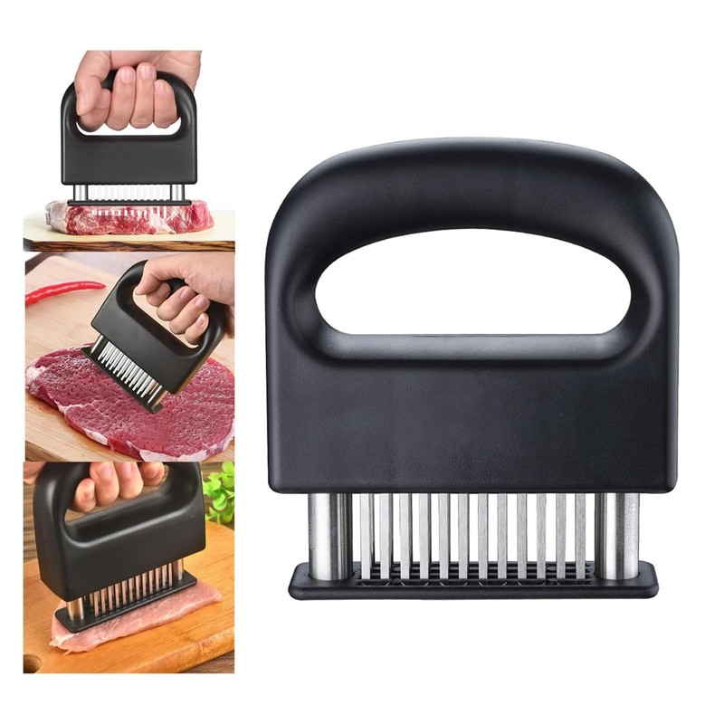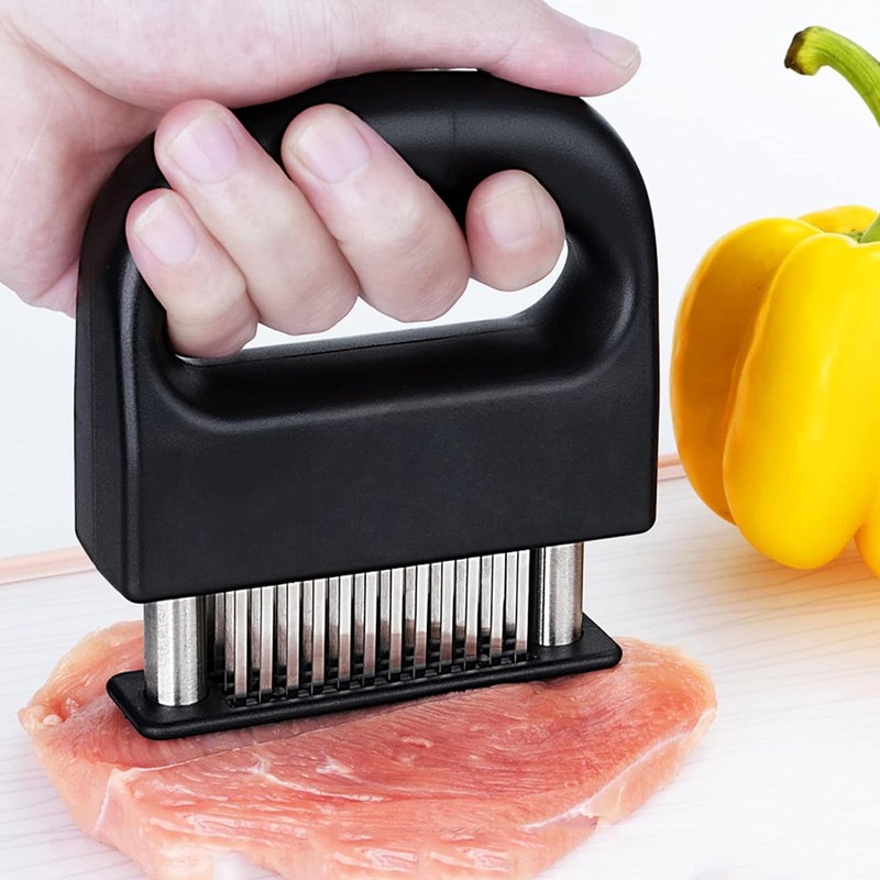 - SAFE & EASY TO USE Comes with a safety lid that spreads out when you press the blade to insert the meat, otherwise they wouldn't. Automatically retracts when lifted with just a few presses, the sharp blade penetrates the meat and helps the marinade quickly penetrate deep into the tissue.