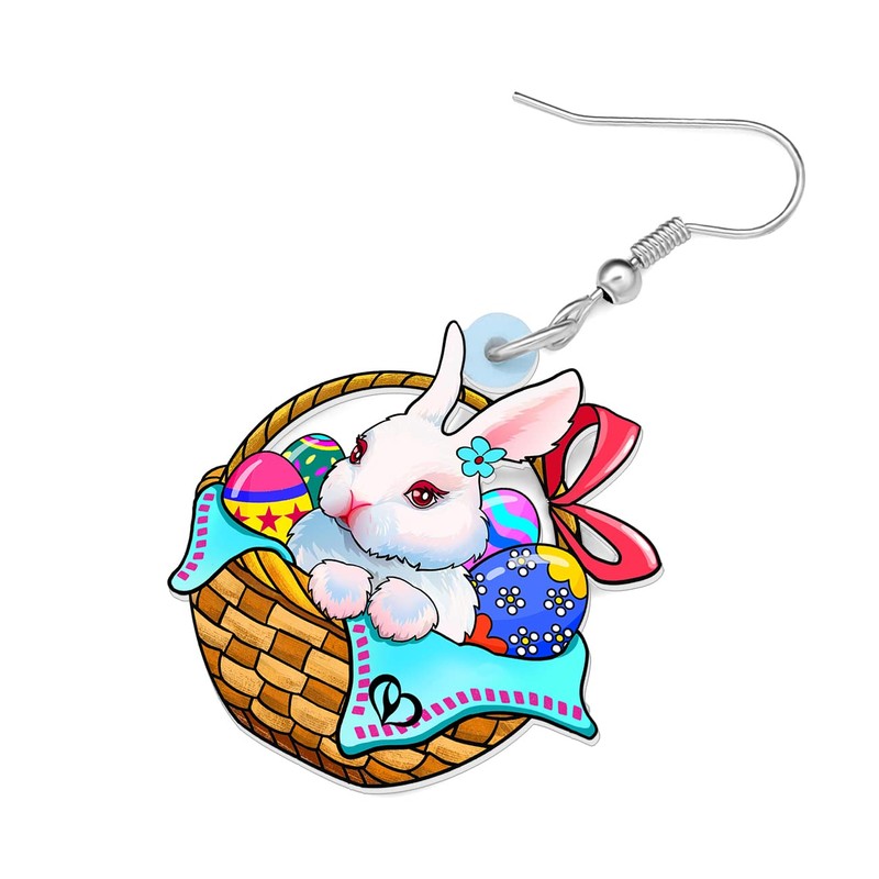 LONYOO Cesta de Pascua acrílica con huevos de conejo, aretes colgantes de gota lindo conejo joyería regalos de Pascua para mujeres y niñas, Acrílico, No es una piedra preciosa