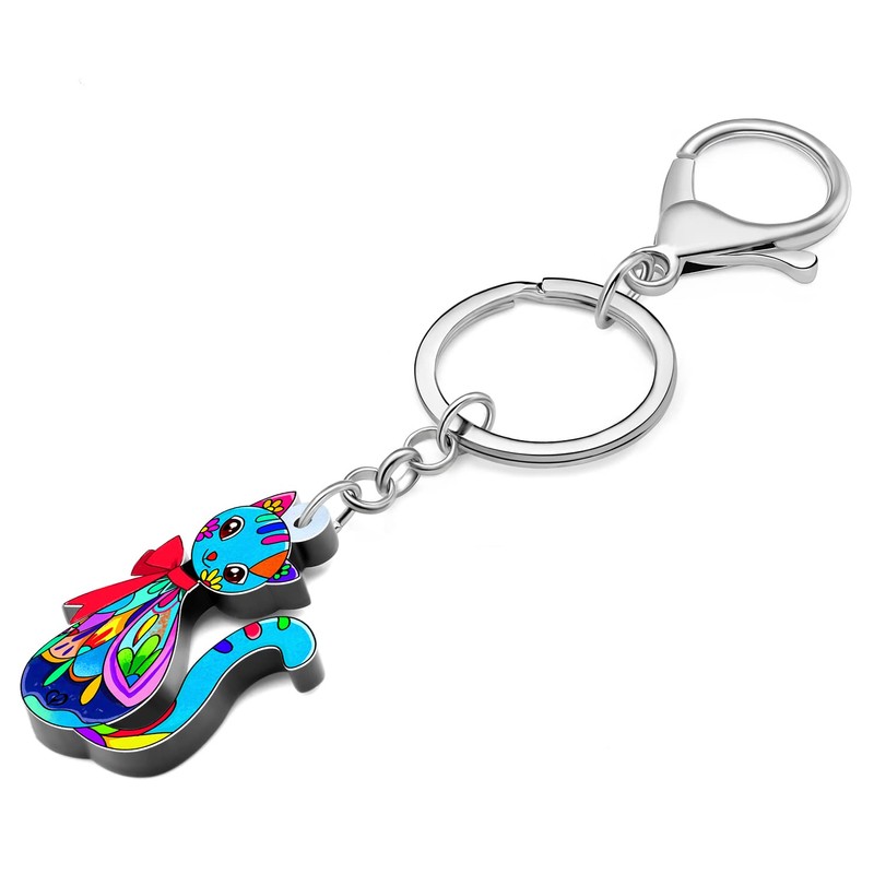 LONYOO Llavero de acrílico con diseño de gatito y gato, llavero para llaves de coche, regalos para amantes de los gatos, mujeres y niñas, Azul cobalto, M