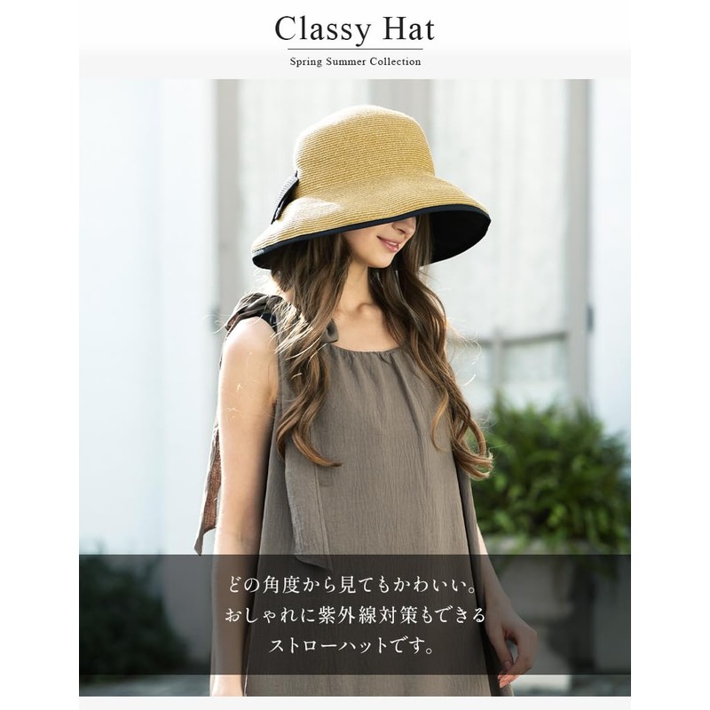 Loo&c Women's Hat, Large Sizes, Straw Hat, Wide Brim, Classy Hat, UV Protection, UV Protection, Straw Hat, Cool to Touch, Spring and Summer, Includes Chin Strap, Adjustable Size, natural
