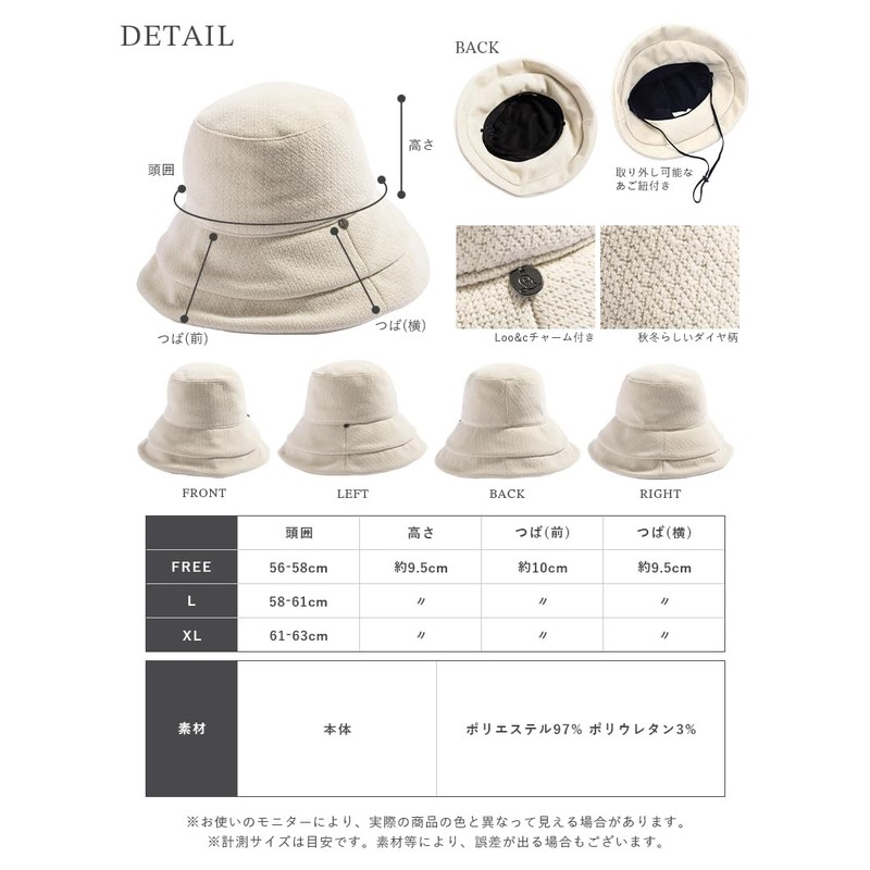 - (Smoothing Face) Made with attention to the silhouette that makes your head look beautiful. The long brim makes your face look smaller. Protects your skin from strong UV rays even in autumn and winter