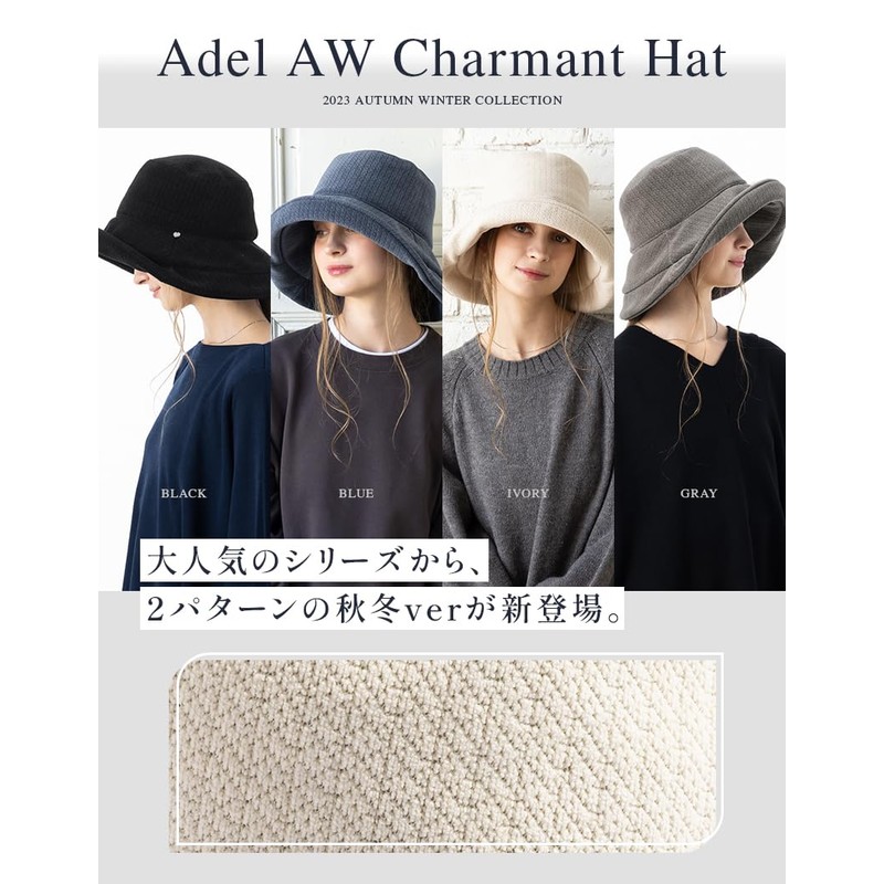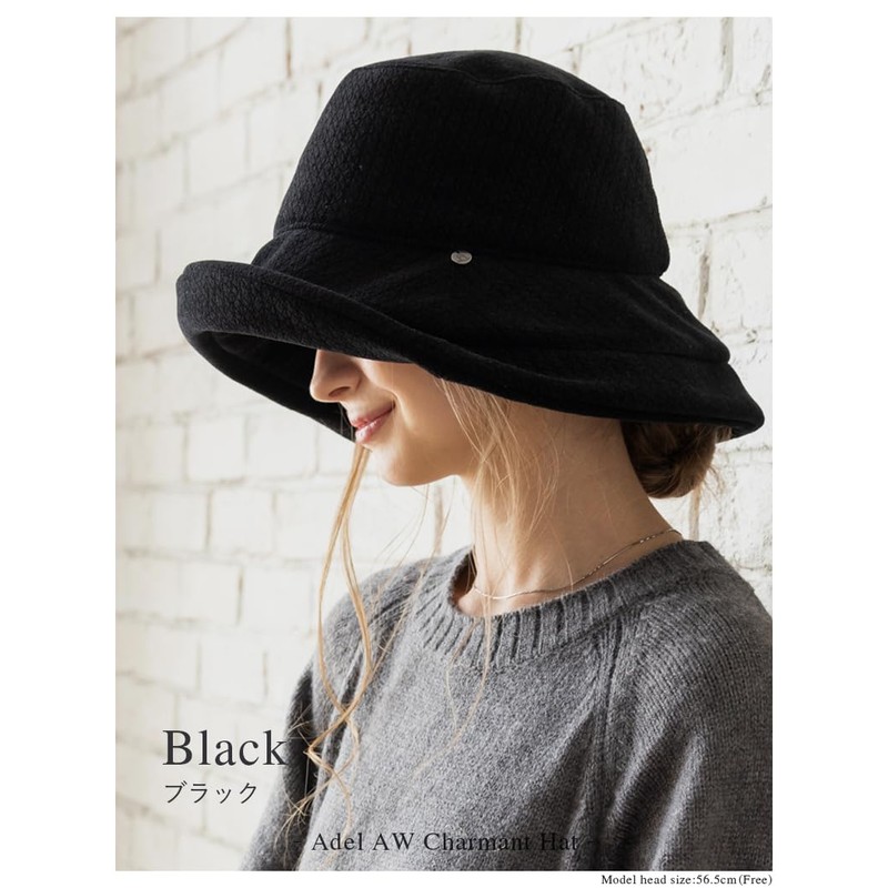 Loo&c Women's Wide Brim Hat, Large Size, Adele AW Charmant Hat, Full Light Blocking, UV Protection, UV Protection, Fall & Winter, Cold Protection, Foldable, Adjustable Size, Includes Chin Strap, Black