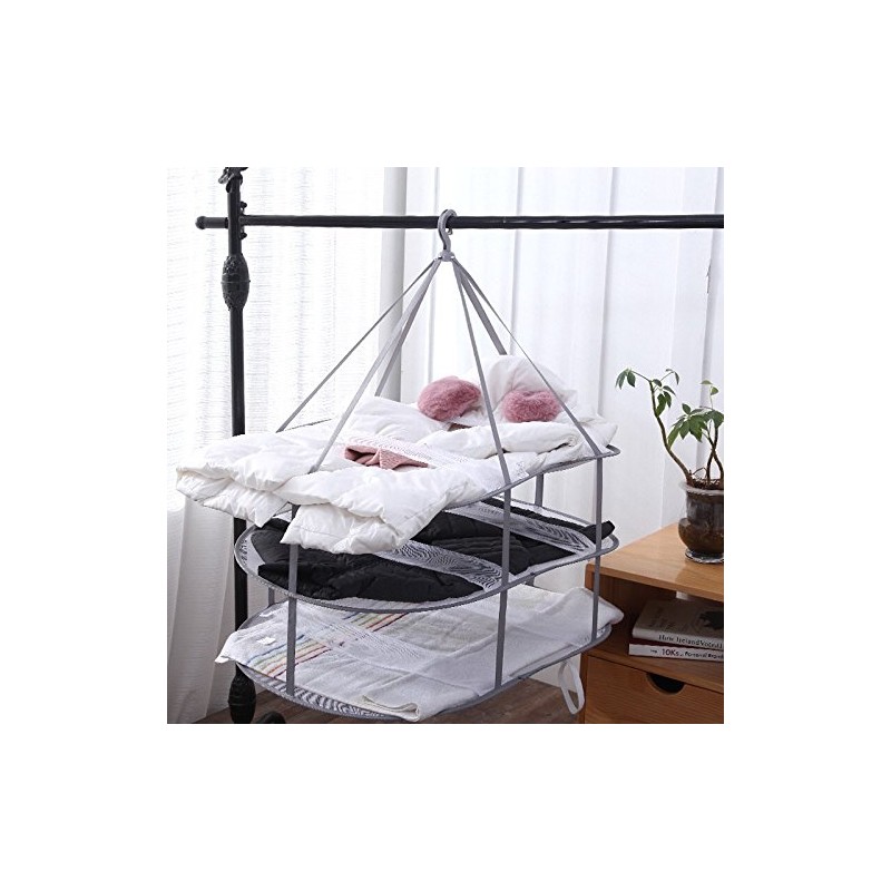 Looca 3-Tier Folded Mesh Clothes Hanging Dryer Sweater Drying Rack 30.3" L * 24.5" W*30.7" H