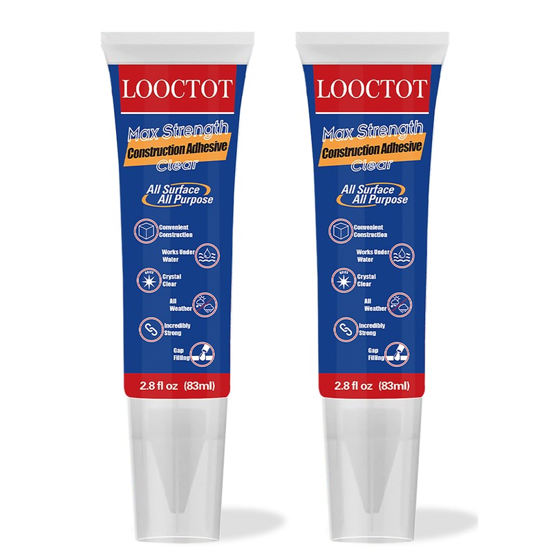 LOOCTOT Max Strength Clear Construction Adhesive, 2.8 fl oz Integrated Squeeze Tube, Versatile Cement for Tile,Floor,Stone,Wood,Wall & More,Works Under Water (2pack)