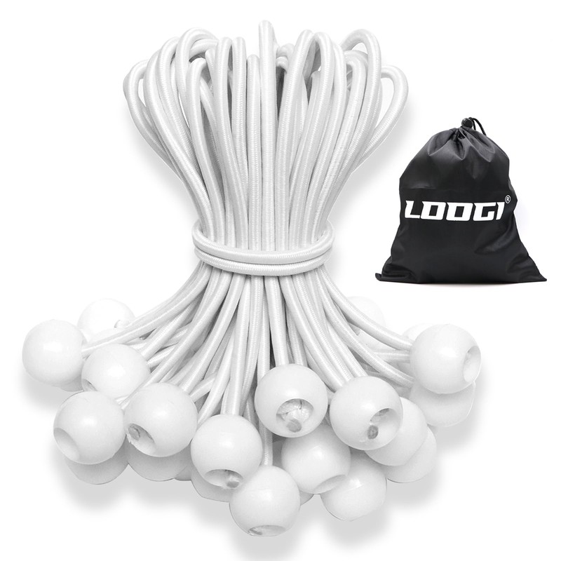 LOOGI Bungee Bands with Ball Pack of 50, Tarpaulin Tensioners with Ball 20 cm, Rubber Tensioner, Tent Elastics Expander Loops, Rubber Loops for Tarpaulins, Tent Banner
