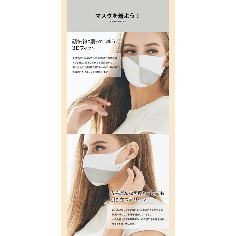 LOOKA Design Mask, Accented, Washable, Painless For Ears, Will Not Dry Skin, Korea, Comfortable, Solid Body, Small Face - Casual White × 1Silver