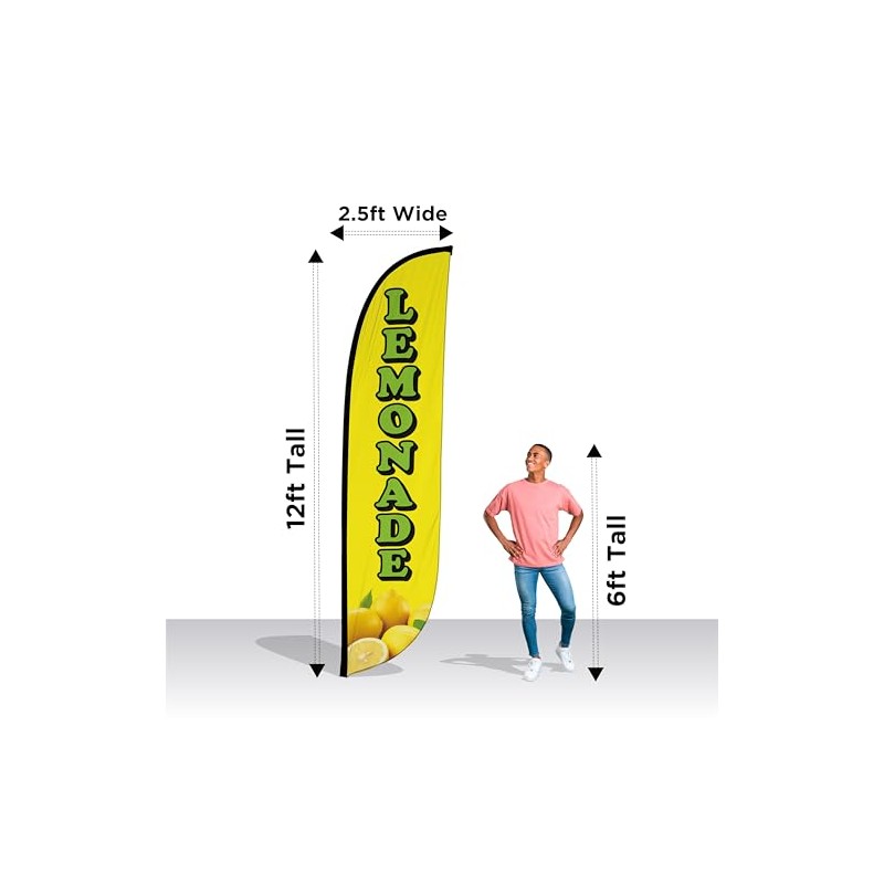 • Designed to Grab Attention: the 12ft design and vibrant colors of these fresh squeezed lemonade feather flag banners make them highly noticeable from a distance; a must-have if you want to increase traffic to your business