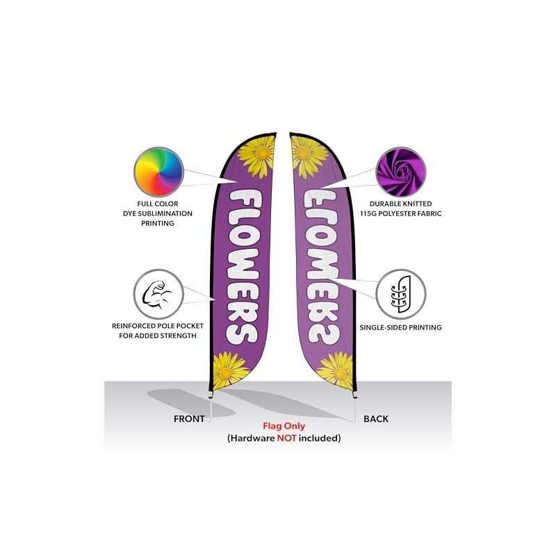 LookOurWay Feather Flag Banner - 12 Feet Tall Advertising Sign Swooper Flag Only, No Poles - Flowers Purple (10M1200631)