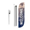 - 1 5ft "Welcome" feather flag (as pictured) and ground spike pole set