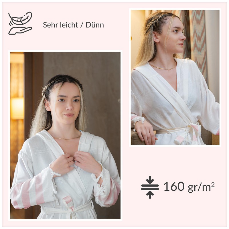 - Silky and lightweight: this women's cotton bathrobe combines bamboo and cotton for a silky soft feel. At only 160 g/m², it is a lightweight bathrobe, perfect for sensitive skin and warm days.