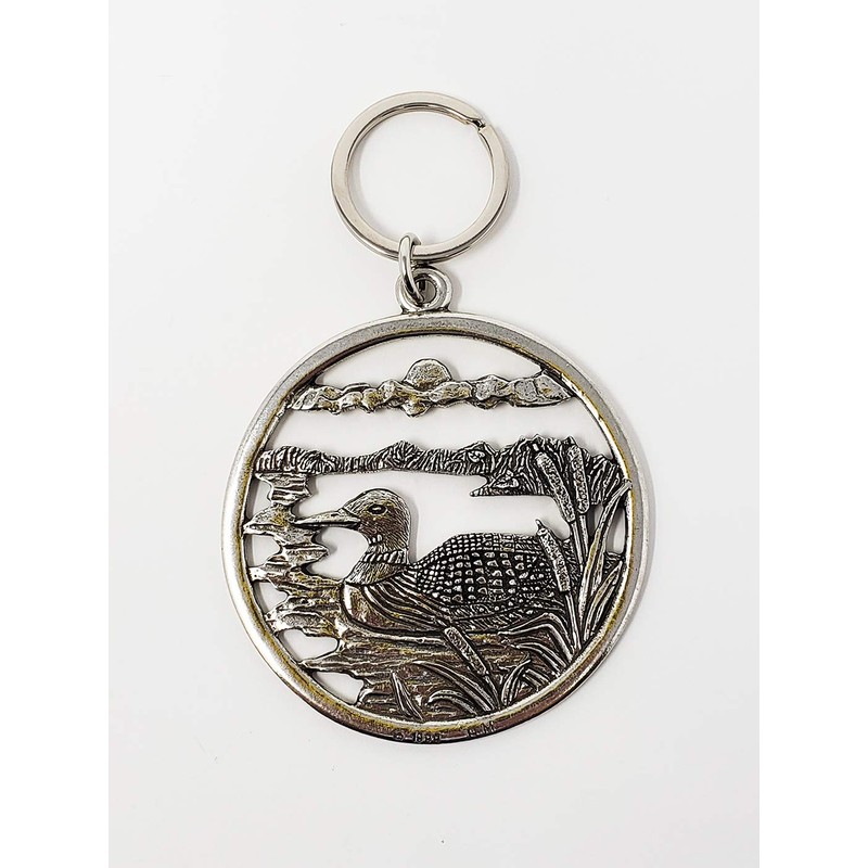 - This exquisite Loon Keychain is highly detailed with the design on both sides. It is handcast and hand-finished in solid American Pewter with a shiny finish resembling antiqued sterling silver.
