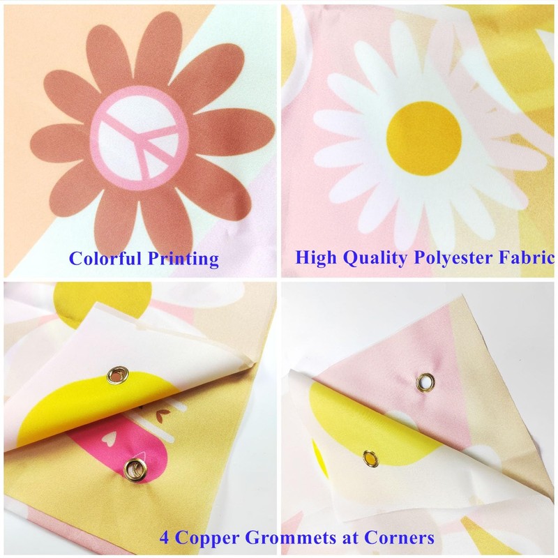 - More Occassions:The groovy backdrop banner is suitable for garden fences, wall, hallway, veranda, patio, fireplace, living room, window, yard, and whatever you like place,perfect for birthday party,hippie birthday party,baby girls party,3rd birthday party,daisy birthday decorations,retro birthday decorations,hippie boho themed party,60s retro party celebration,1970s themed party,flower power party,bohemian birthday party. Also can be applied as photo background,photo studio photography