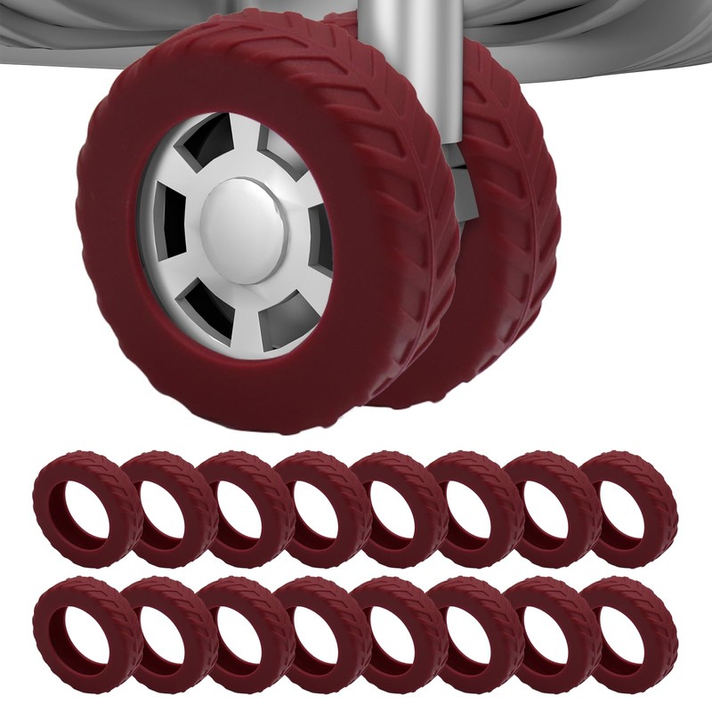 16Pcs Luggage Wheel Covers,Silicone Suitcase Cover for 2-2.4'' Spinner Wheel, Carry On Luggage Wheels Protector,Upgrade Suitcase Wheels Protective,Essential Travel Accessories (Wine Red)
