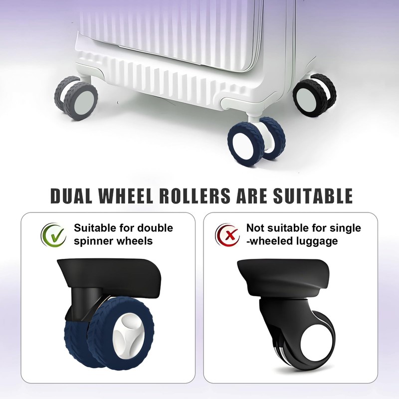 • 【Anti-shedding Design】Widening the outside coverage of the protector to 1cm,the Such design can make the Suitcase Wheel Covers wrap the wheels tighter,no easy to slip off,offer a more tailored fit,ensuring suitcase wheel covers'superb functionality and stability.