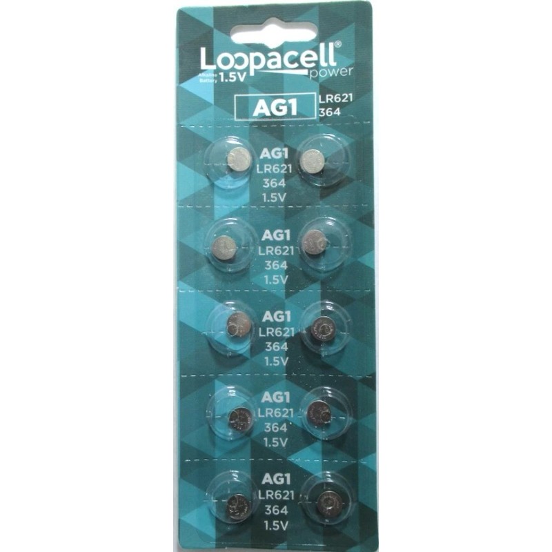 loopacell 10 Pk Fresh AG1 LR621 364 SR60 164 364A Alkaline Button Cell Batteries
