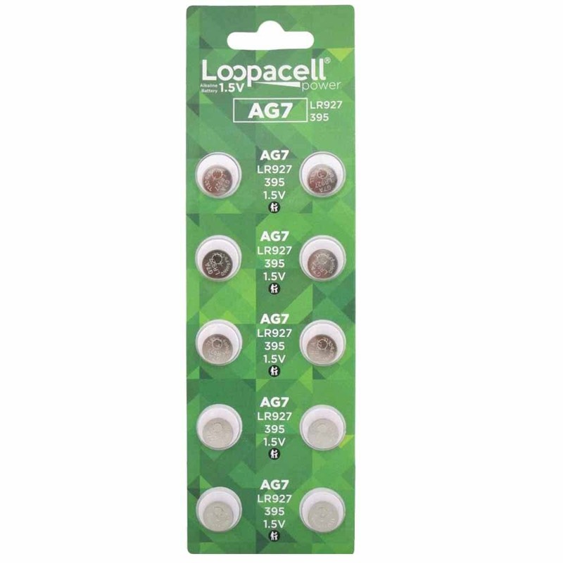 50 fresh genuine Loopacell AG7 alkaline 1.5v batteries new packaging that guarantees authenticity, Works for: Laser Pointer Insulin Pumps, Heart Rate Monitor, toys ,Watches, Cameras, Calculators, Car Security Alarm, Keyless Car Remotes, Organizers, Computer Equipment (memory backup battery) CMOS, and all other devices that requires this battery size Equivalent to: 395B, 395A, 399, 399B, V399, D399, GP399, 613, 926, 926E, 927, SR927, SR927W, LR927, LR927W, SR927SW, TR927SW, G7, CX57, SR57, 280-44, SB-BP, SB-EP,