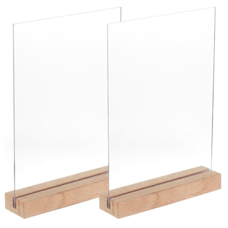 Loopunk 2 x A4 Acrylic Wooden Poster Stand Perspex Menu Stand for Office Shop Restaurant