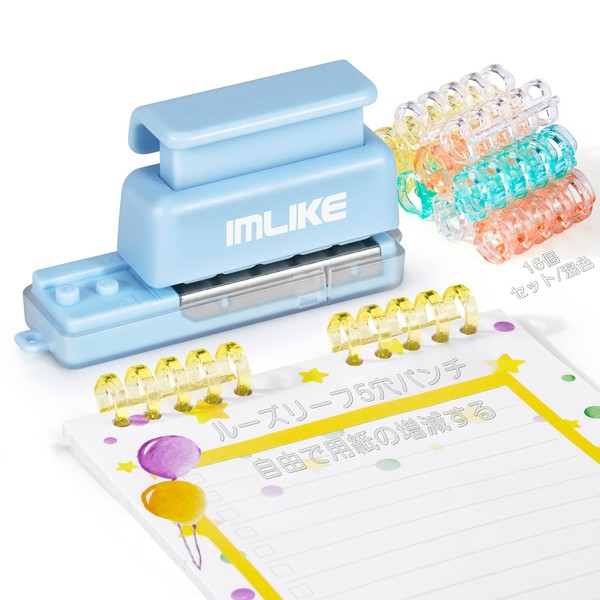 Loose Leaf 5 Hole Punching 5 Hole Binding Binding Tool Set of 16 / Mixed Color: Organizer, Refill, Binder, Can Be Used to Increase or Decrease Paper Freely, 5 Holes (Light Blue)